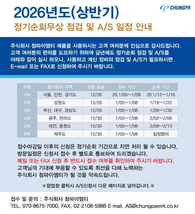 2026년도(상반기) 정기순회무상 점검 및 A/S 일정 안내